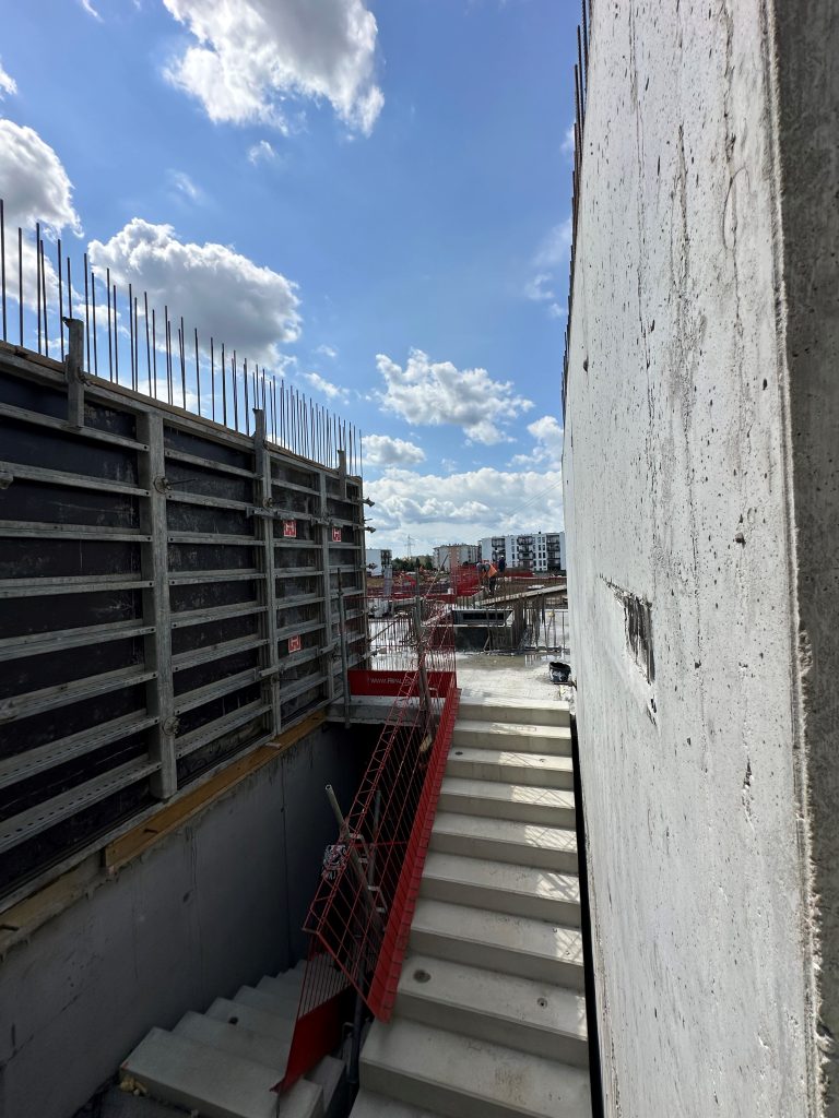 Zakres prac obejmuje wykonanie fundamentów w żelbetowych monolitycznych ścian/żeber fundamentowych w technologii białej wanny oraz wykonanie ścian w technologii murowanej oraz żelbetowej.