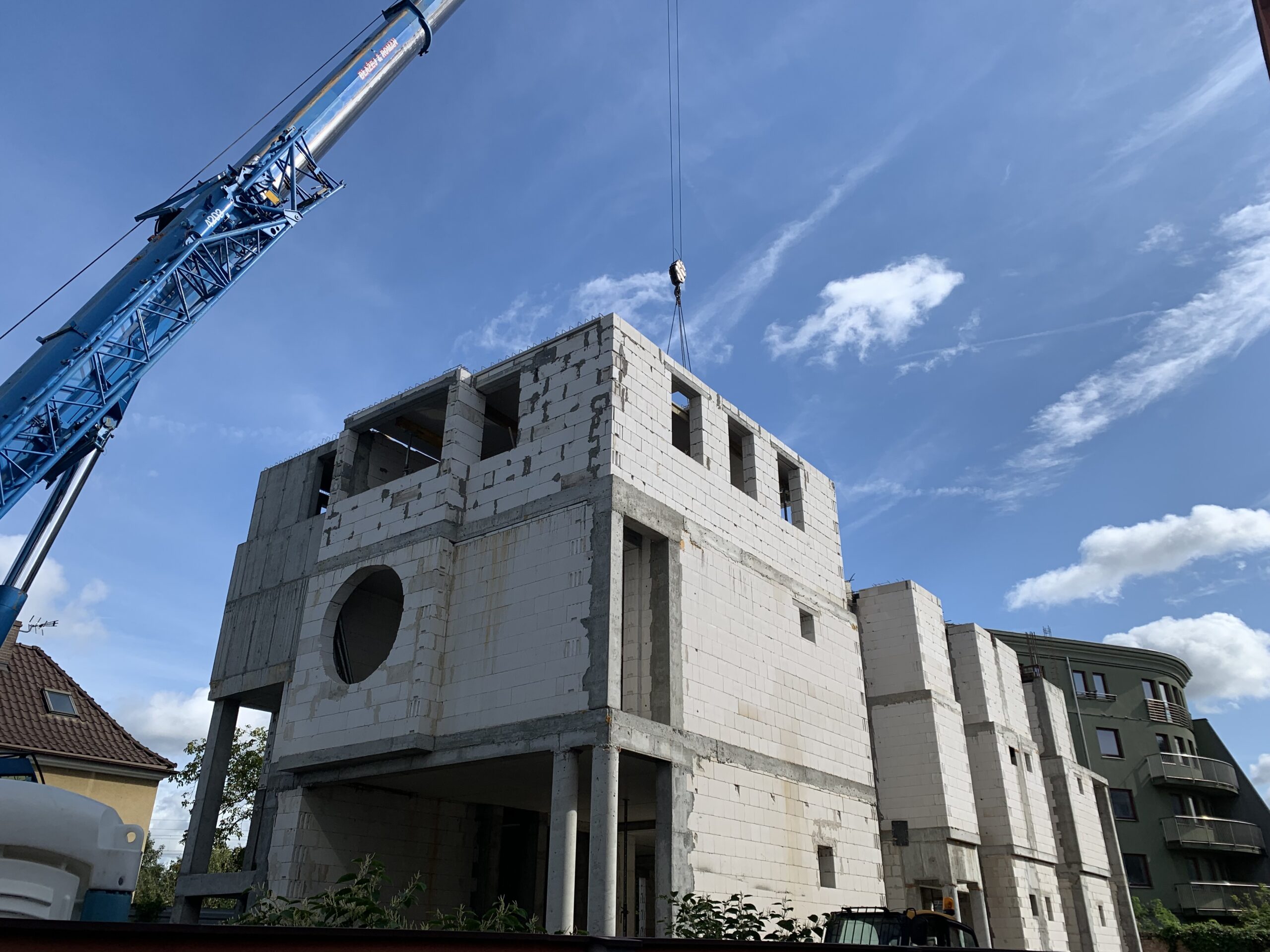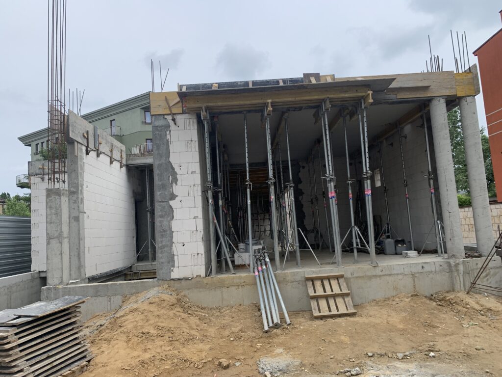 Wykonanie stanu surowego otwartego budynku mieszkalnego z z częścią usługową 4 kondygnacyjnego z 3-ma kondygnacjami nadziemnymi i 1 kondygnacją podziemną.